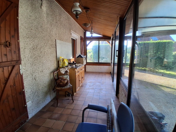 Votre conseillère NOOVIMO Marie-Laurence Rogey 06.46.47.27.47 mlrogey@noovimo.fr vous propose Un havre de paix à découvrir sans tarder ! Maison de 125 m2 sur terrain arboré de 1792 m2 avec deux garages. Située au bout d'une impasse, dans un environnement calme et verdoyant, cette charmante maison d'environ 125 m2 offre un cadre de vie paisible et agréable, idéal pour les amoureux de la nature et du calme. Elle s'ouvre sur une véranda d'entrée lumineuse donnant à une cuisine fonctionnelle et une salle à manger, un grand salon avec un poêle à granules.Vous y trouverez deux chambres dont une de 25 m2, ainsi que deux bureaux, dont un de 22.00 m2, offrant de nombreuses possibilités d'aménagement ( chambre supplémentaire, atelier, espace de télétravail... ) Une salle d'eau, un wc séparé et une mezzanine viennent compléter l'espace intérieur. A l'arrière, une seconde véranda permet de profiter pleinement du jardin tout au long de l'année. Un terrain, d'une superficie de 1 792 m2, est joliment arboré et sans vis à vis , garantissent intimité et sérénité. La propriété dispose également de deux garages et d'un débarras offrant de beaux volumes de rangement. Cette maison combine calme, espace et potentiel dans un cadre privilégié.Une opportunité rare à ne pas manquer